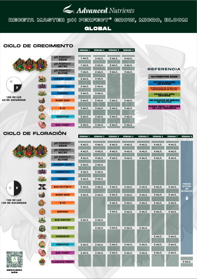 ¿Conoces el programa de fertilización que Advanced Nutrients recomienda? Te lo dejamos a continuación: