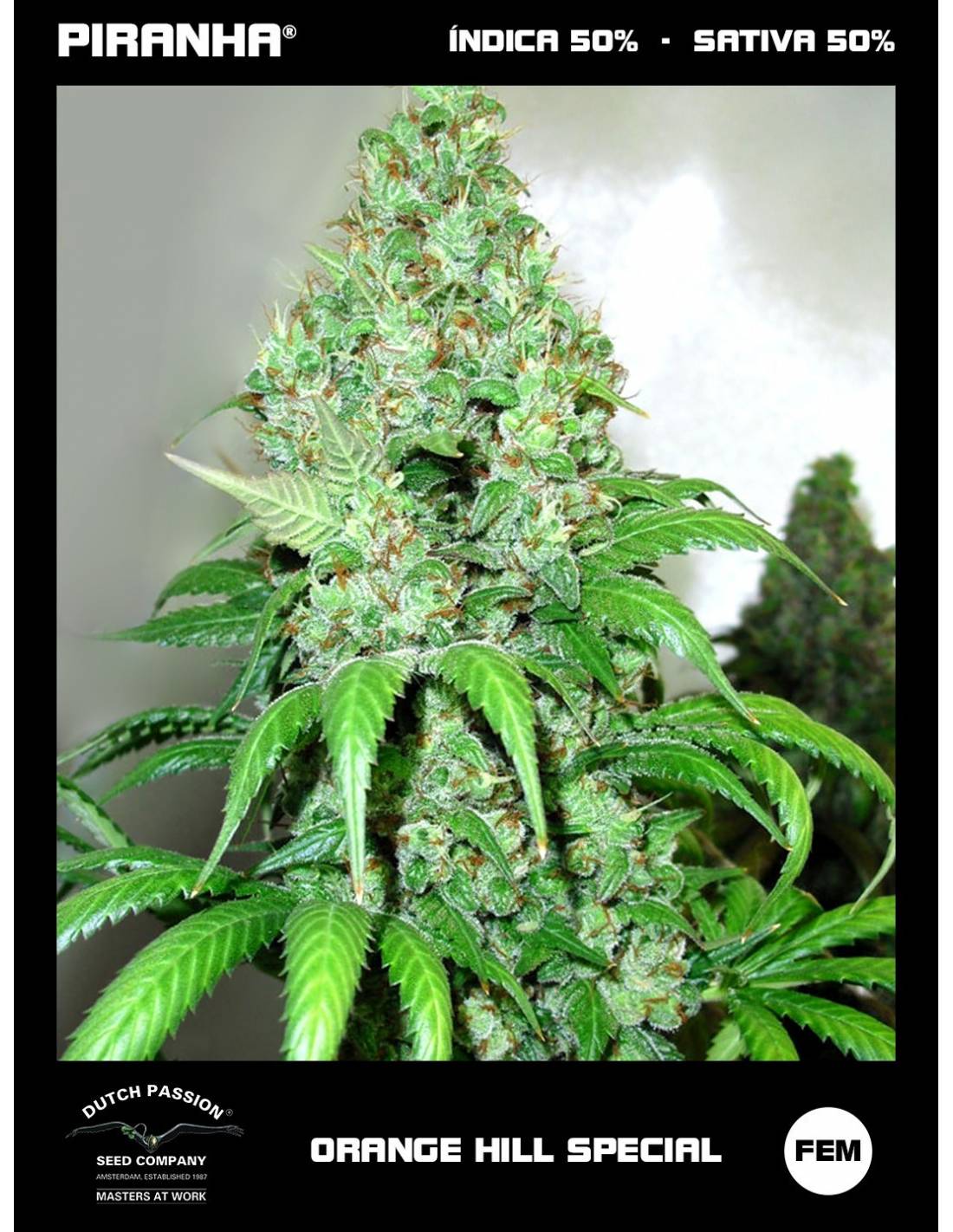 La Orange Hill Special de Dutch Passion es el resultado de la mezcla genética de la Californian Orange y la Orange Bud. Las plantas de este híbrido 50/50 Indica/Sativa no crecen mucho y rara vez sobrepasan el metro de altura, pero llegan a ser muy tupidas y también tienen unos rendimientos altos - de hecho, Dutch Passion afirma que esta es la mejor productora de la familia "Orange". Estas semillas son aptas para su cultivo interior, exterior y de invernadero.