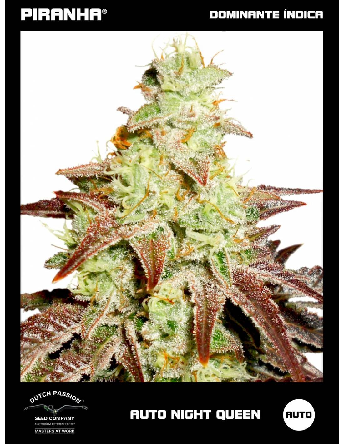 La Auto Night Queen se creó a partir de la Night Queen original afgana, una variedad muy resinosa. Indica muy potente, con unos niveles de THC superiores al 20 %, ganó un premio en la Champions Cup 2015 de Málaga. Continúa la tradición familiar con las pegajosas cosechas Kush de excelente potencia, muy por encima de la media en cuanto a calidad y cantidad.