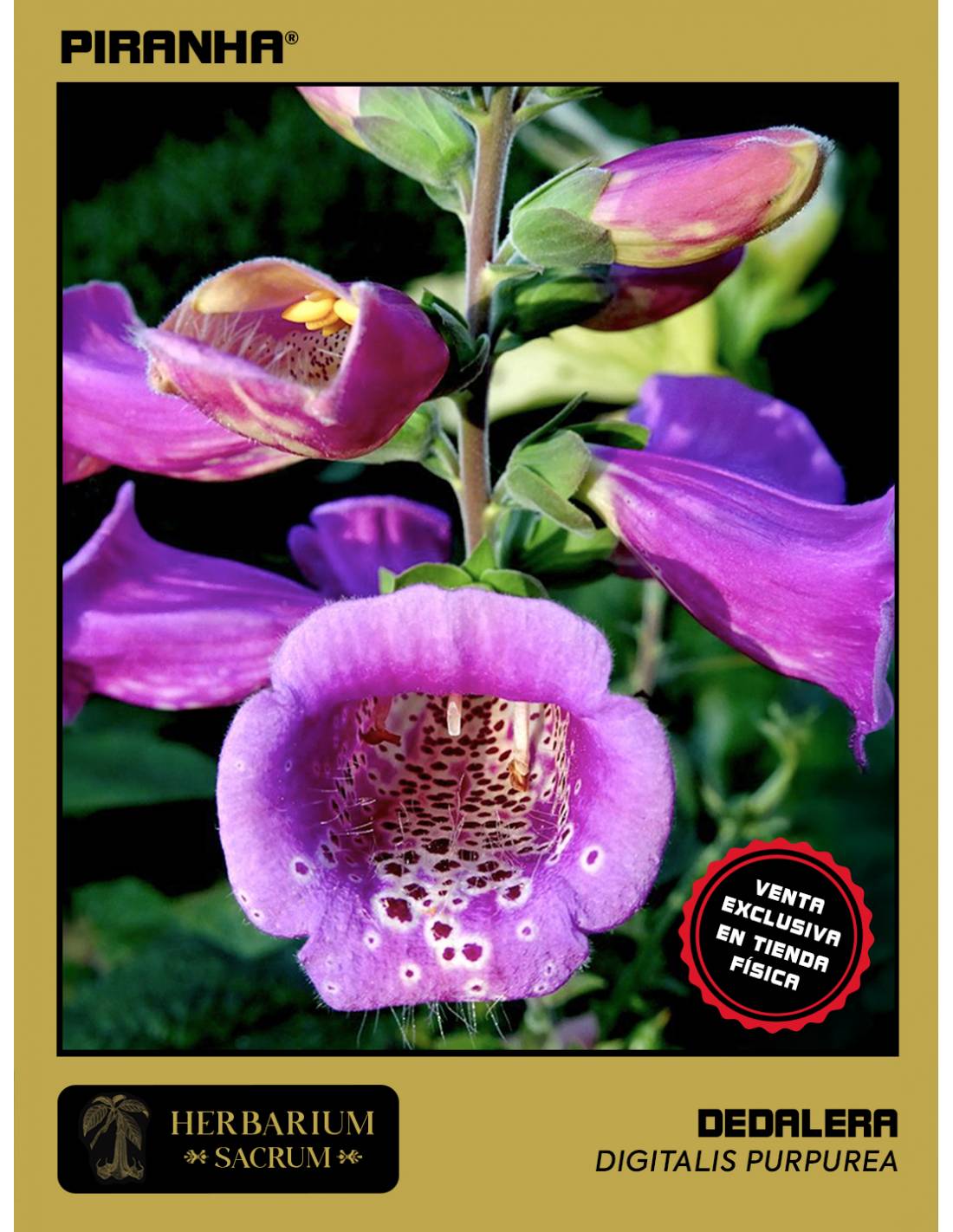 La Dedalera es una planta de gran elegancia, famosa por sus altos tallos coronados de flores en forma de campana que despliegan tonos intensos de púrpura, rosa y blanco. Originaria de Europa, esta especie es altamente valorada como ornamental gracias a su porte majestuoso y su capacidad de atraer polinizadores al jardín. En PIRANHA la encontrarás cultivada en macetas de distintos tamaños, ideal para quienes buscan una planta exótica y llamativa que aporte un aire silvestre y distintivo a cualquier espacio.