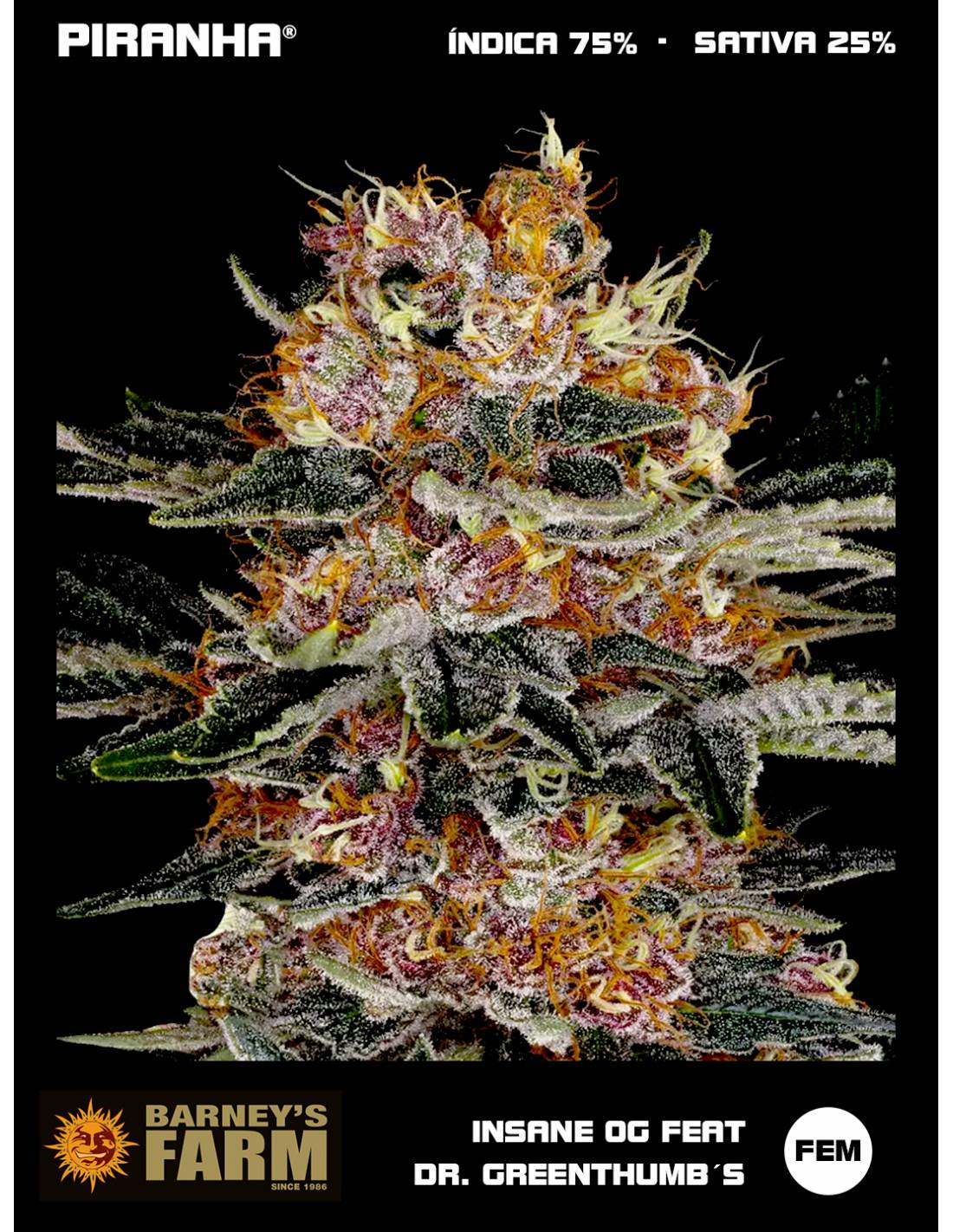 Una asociación icónica en la cultura del cannabis. Insane OG no sólo encarna la esencia de la excelencia cannábica, sino que también rinde homenaje a la rica historia y cultura que tanto Barney's Farm como B-Real han cultivado a lo largo de los años.