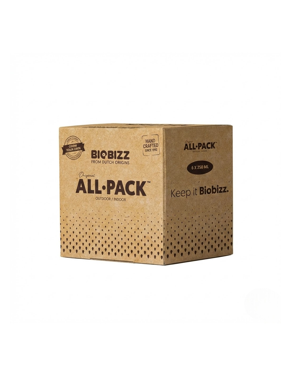 Ya sea en terraza, patio o directamente en tierra, el All·Pack Outdoor 6x250 ml entrega a tus plantas una nutrición completa para desarrollarse de forma natural al aire libre, adaptándose a las exigencias del cultivo exterior.