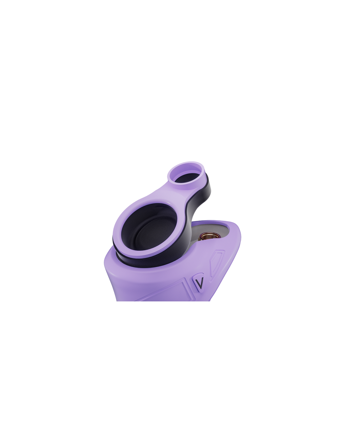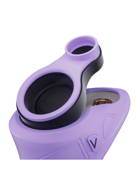 El cuerpo integra un grip de silicona que mejora el agarre y el control, junto al V Button, un botón multifunción que permite cambiar presets, iniciar o detener ciclos de calentamiento y revisar el nivel de batería con un solo clic.