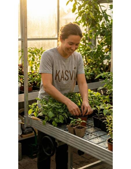 La Mesa de Cultivo con Ruedas 120×120 cm Kasvi es un rolling bench diseñado para optimizar al máximo el espacio en cultivos indoor o invernaderos. Ofrece una superficie útil de 120 × 120 cm e integra postes para instalar malla trellis, facilitando el soporte y guiado de plantas de mayor tamaño sin sacrificar orden ni accesibilidad.
