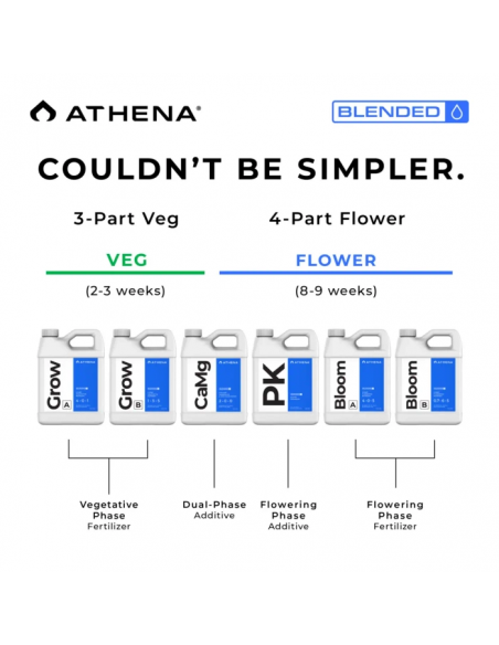 El Athena Blended Starter Kit 946 mL c/u es un sistema integral de fertilización diseñado para cubrir todas las necesidades nutricionales del cultivo desde la fase vegetativa hasta la floración. Está pensado especialmente para cultivadores principiantes o domésticos que buscan resultados profesionales con un manejo simple y ordenado.