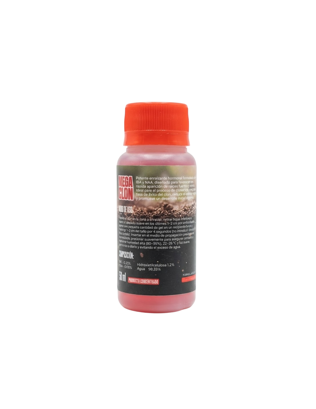 La fórmula contiene IBA 0,33%, NAA 0,08%, hidroxietilcelulosa 1,2% y agua 98,39%. La base gelatinosa permite que el producto se adhiera al tejido vegetal, evitando escurrimientos y asegurando una cobertura homogénea del área de corte. Esto facilita una absorción controlada de las hormonas y mejora la consistencia entre clones.