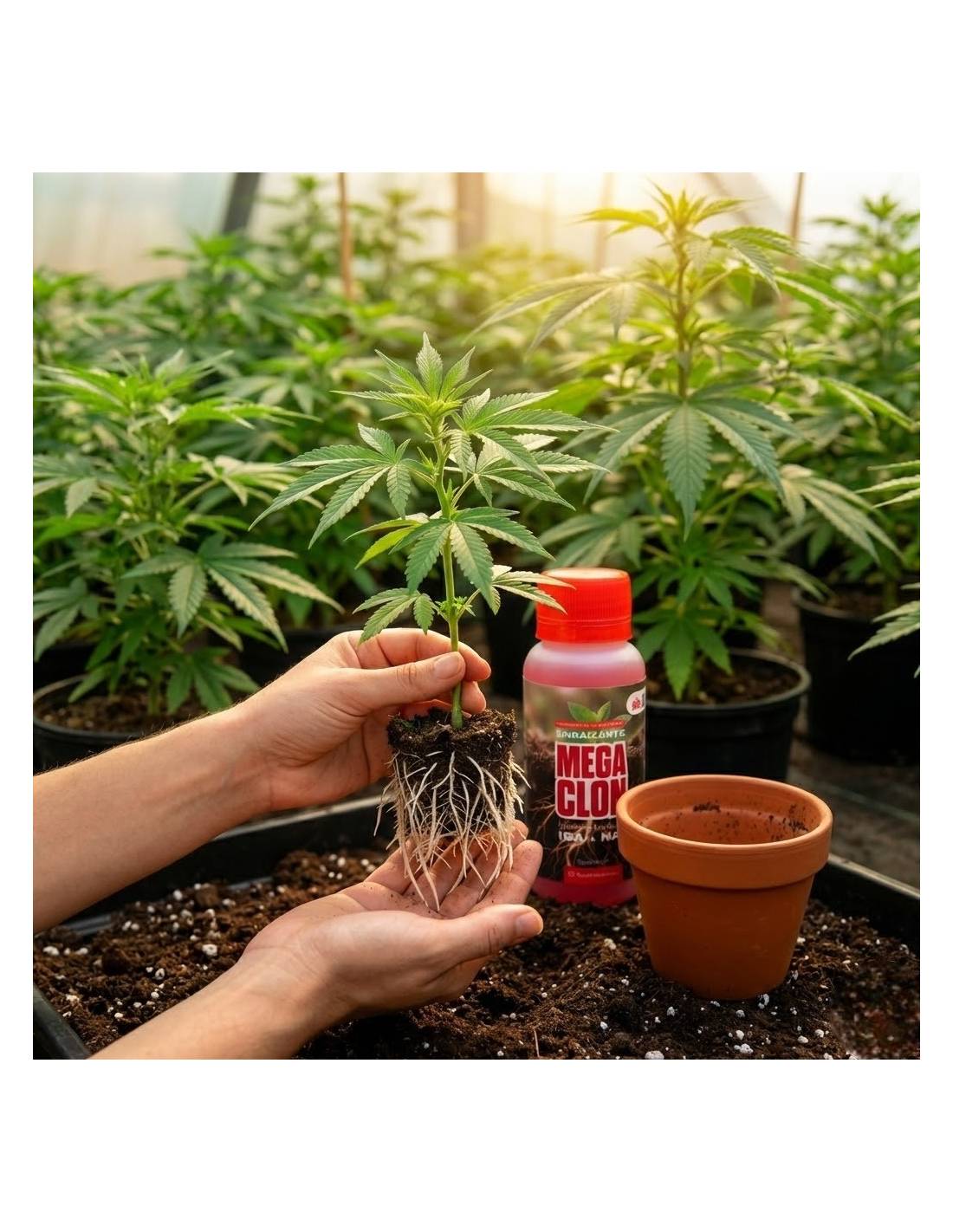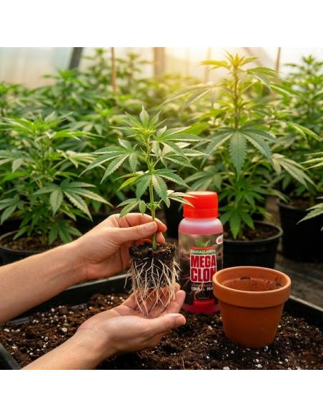 Está diseñado para la clonación de esquejes, estimulando la formación de raíces en las fases iniciales de propagación.