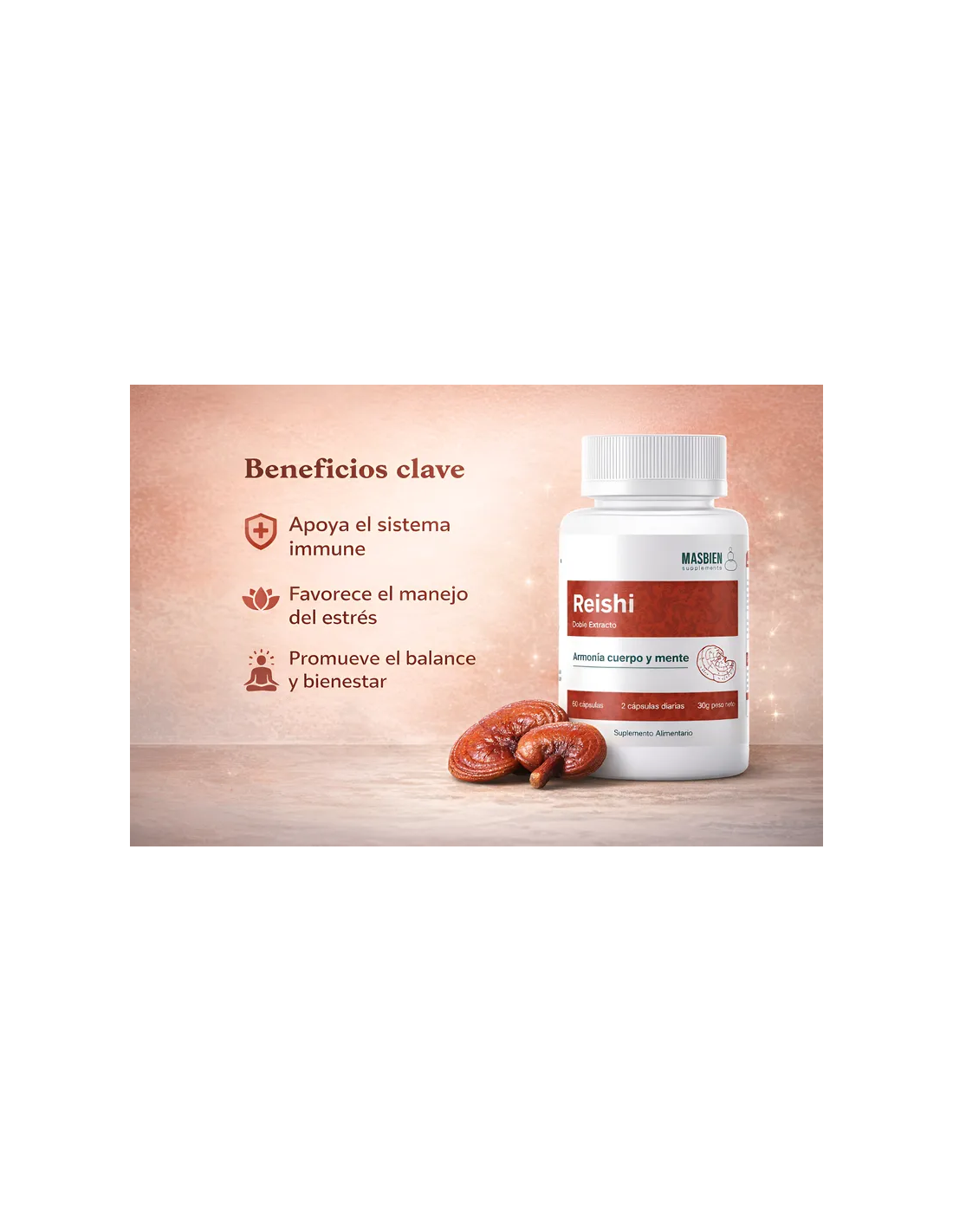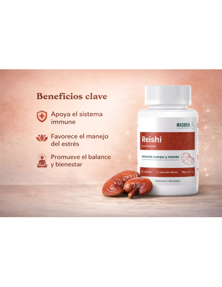 Las cápsulas de Reishi Masbien, enriquecidas con Citrato de Magnesio y Vitamina D3, están formuladas para apoyar el descanso profundo, la relajación y la función inmunológica de forma natural. Este hongo adaptógeno, utilizado durante siglos en Asia, ayuda a calmar la mente, reducir la tensión acumulada y favorecer un sueño de mayor calidad, contribuyendo al equilibrio general del organismo. Si buscas recuperarte mejor cada noche y fortalecer tu bienestar desde la base, este suplemento es una excelente alternativa.