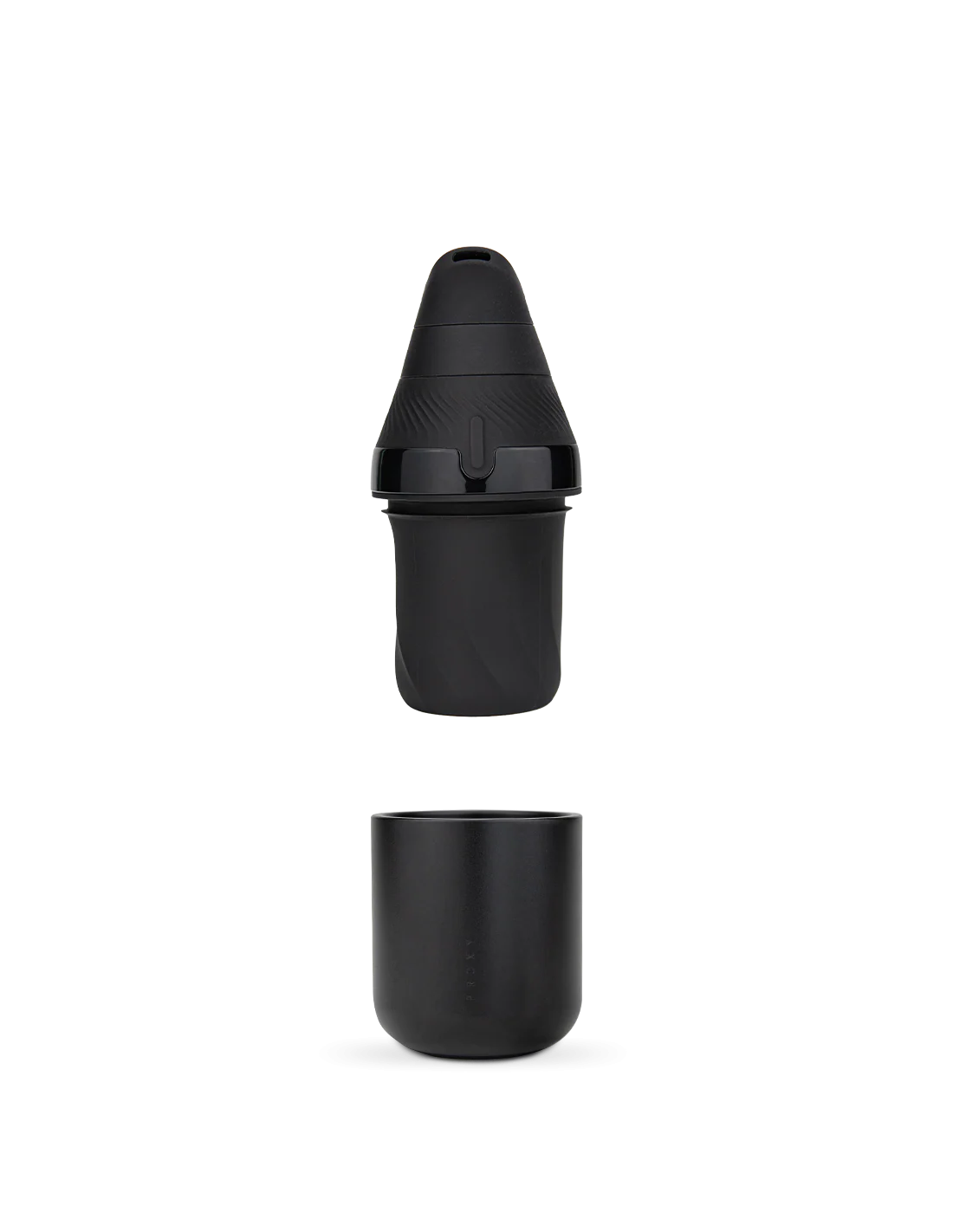 El flujo de aire circula únicamente por la cámara y la boquilla, sin contacto con el cup.