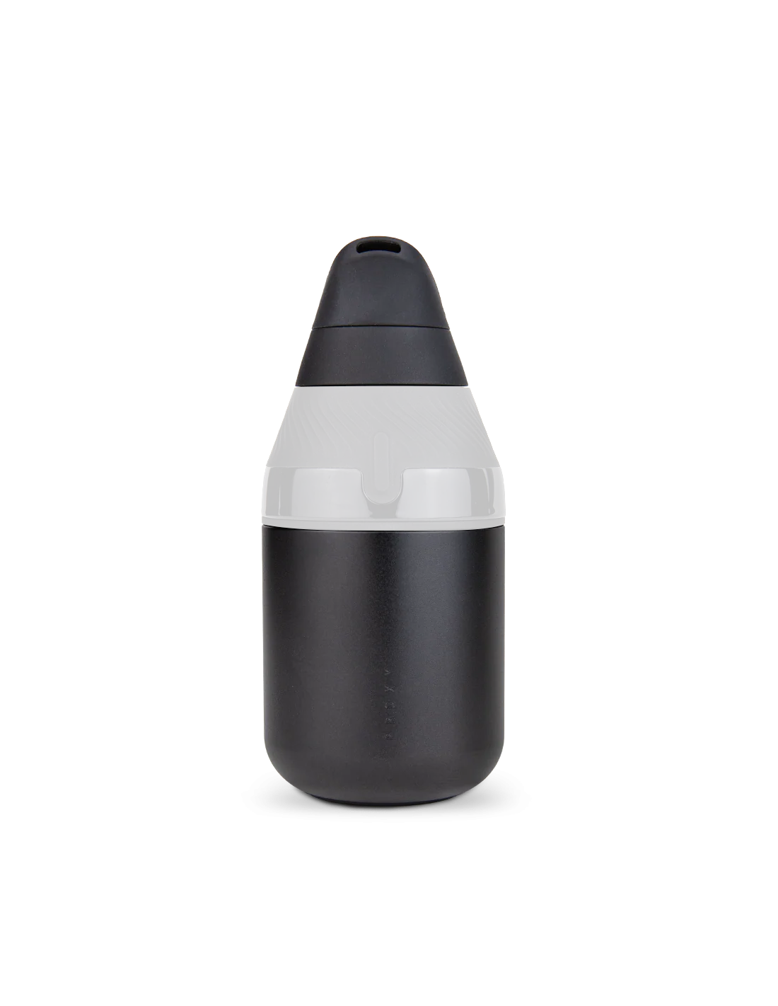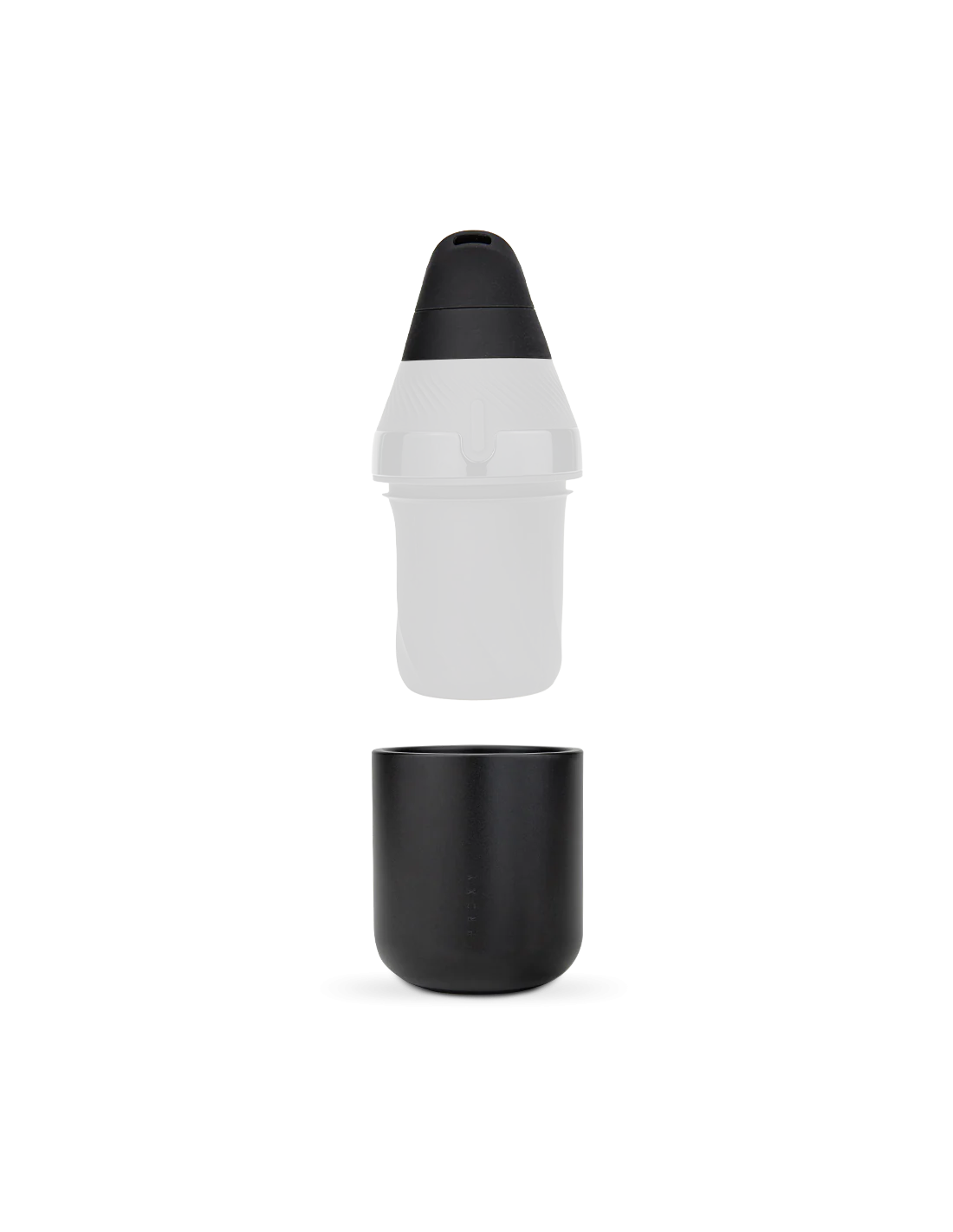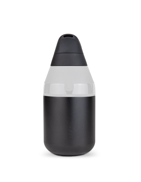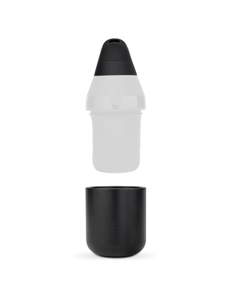 Su estructura reemplaza el vidrio tradicional por un cup de aluminio anodizado y una boquilla de silicona, aumentando significativamente la resistencia y durabilidad del equipo, ideal para uso diario y transporte.